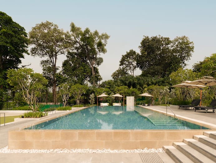 Sustainable thinking does not just apply to the building but also to the landscaping. “Mindful of existing tree roots, we wove footpaths sensitively around tree protection zones, using loose stepping stones when it came near existing roots. The yoga deck was raised on what had once been an open lawn, minimising disturbances to existing tree roots and ecosystems,” said Grant Associates’ senior associate, Agnes Soh, speaking about the design of the Wellness and Healing Garden adjacent to the pool.