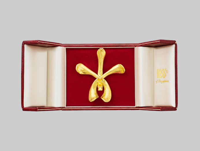 By 1974, Dr Lee had succeeded in encasing an Oncidium bloom in gold, creating the prototype for Risis (the name itself SISIR read backwards). In 1976, Risis unveiled its first gold-plated orchid brooch, the Aranda Deborah, at Tangs department store, drawing a crowd.
