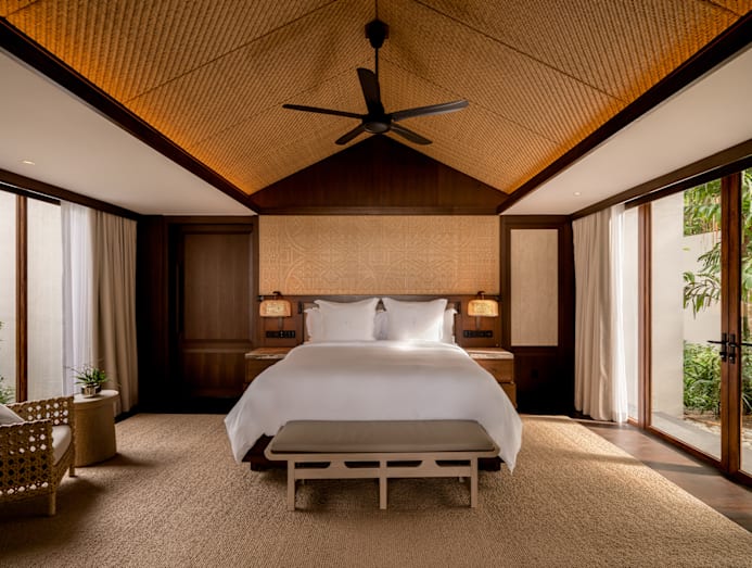For instance, the two-bedroom villas he renovated at the Four Seasons Hotel Langkawi feature bespoke master bedroom headboards created in collaboration with Indonesian weaving artisans BYO Living. Each piece is made with its signature threading technique, with motifs inspired by traditional Islamic and Malay ethnic patterns.