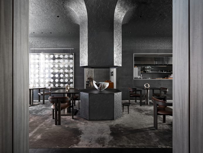 At the Michelin-starred Ando restaurant in Hong Kong, over 200 sq m of wall and ceiling surfaces were skilfully finished in roughened black plaster. The raw, tactile texture evokes the earthy sensibility of chef Agustin Balbi’s Argentine roots and reflects his produce-driven concept.