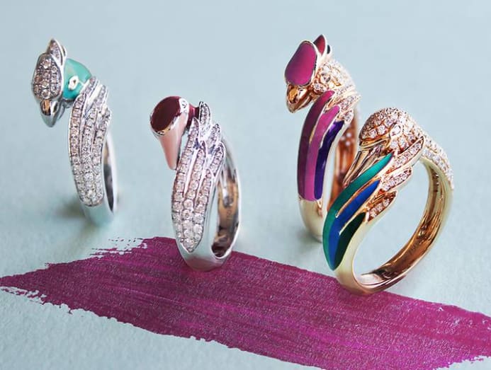 On the label’s e-commerce site, customers can also customise designs to fit their own individual preferences. For example, on a single ring, customers can choose the gold purity, enamel colours, and even engravings they’d like on a piece.