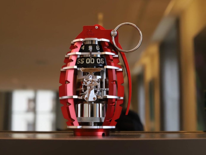 One L’Epee clock that encapsulates this ethos perfectly is the Grenade – a compact, mantel timepiece. “We didn’t create the Grenade to emphasise war. Instead, its design turns an object associated with destruction into a poignant reminder of the preciousness of time and to seize the moment.” In Nicolas’ reinterpretation, the Grenade’s defining feature, the pin, is a winding key. “When you pull the pin on a real grenade, it becomes a dangerous object, but on this clock, pulling the pin brings it to life. It’s a symbolic act to remind us that time is fleeting and should be cherished,” he elaborated.