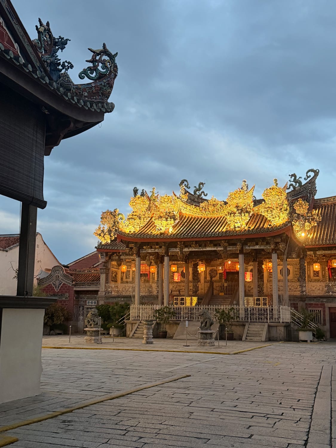 “My favourite part of Soori Penang is after hours,” remarked architect Chan Soo Khian as we stood in front of the Khoo Kongsi temple. It was not hard to see why. Dusk’s pink glow magnified the theatricality of the temple’s roof charms, stacked high with porcelain-covered flowers, figurines, emblems, and dragons’ mouths agape mid-roar. Lit by spotlights and paper lanterns, the jinbo (gold leaf) on century-old beams shone as if on fire.