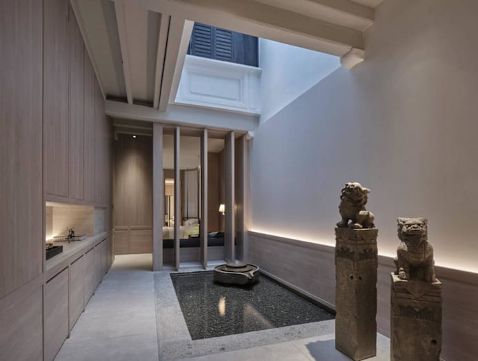 “One of my aspirations was to create a hotel that allows guests to experience the essence of what a shophouse can be in a modern, luxurious way, so I turned over 40 rooms into these 15 suites,” explained Chan. “Guests are very happy to open the door and see the expanse of space, the light, and the tranquillity. It’s almost like they’re entering into a different world. I wanted to make a sanctuary – a place where guests can relax. This is achieved through elemental architectural principles like space, light, and shadow.”