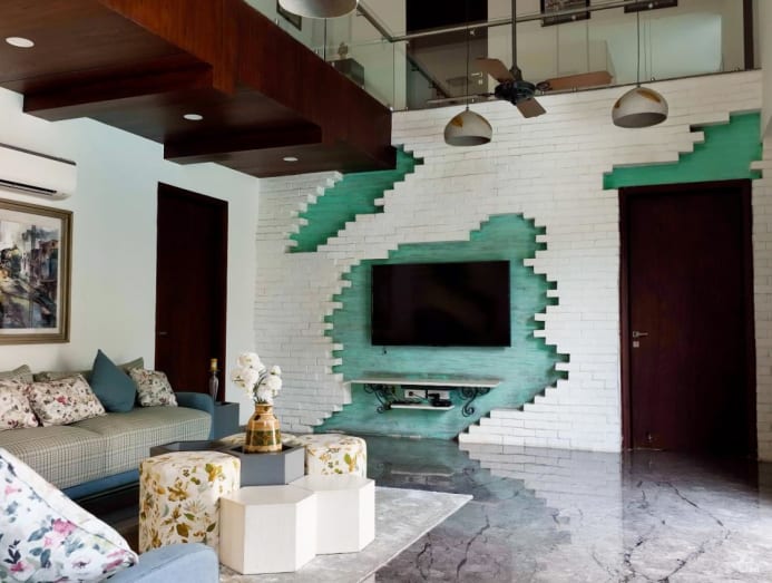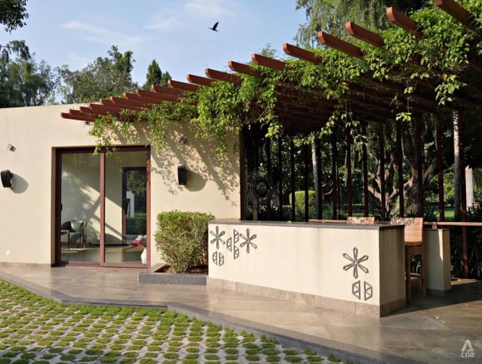 From a movie theatre to an outdoor bar, this spacious house in India has a lot of free-flowing spaces that are perfect for entertaining family and friends.