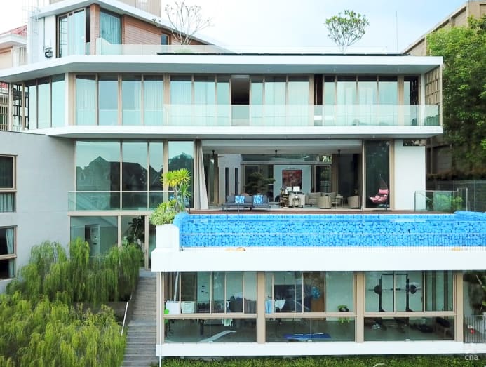 The 9,000 sq ft bungalow sits on an elevated cul-de-sac site, surrounded by lush foliage and overlooking unblocked panoramic views.