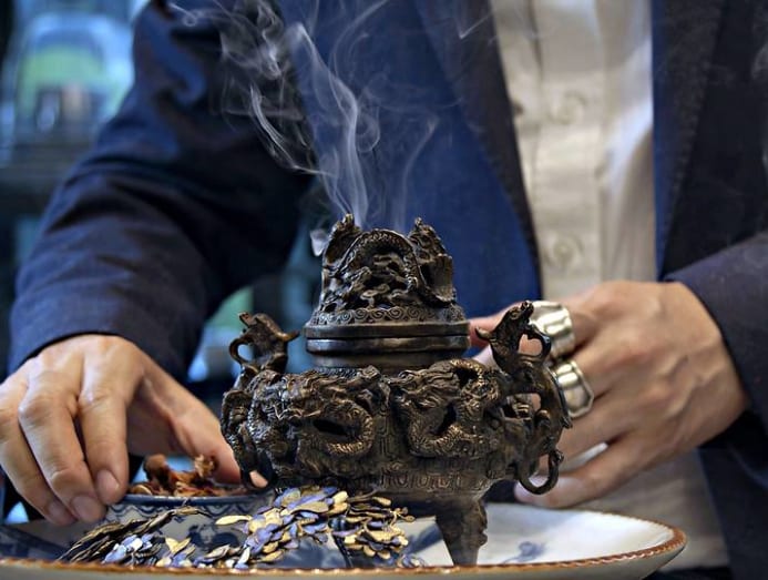 Sarran Youkongdee also scents his creations – which fans describe as wearable art – with incense burners, in accordance with an ancient Thai practice.