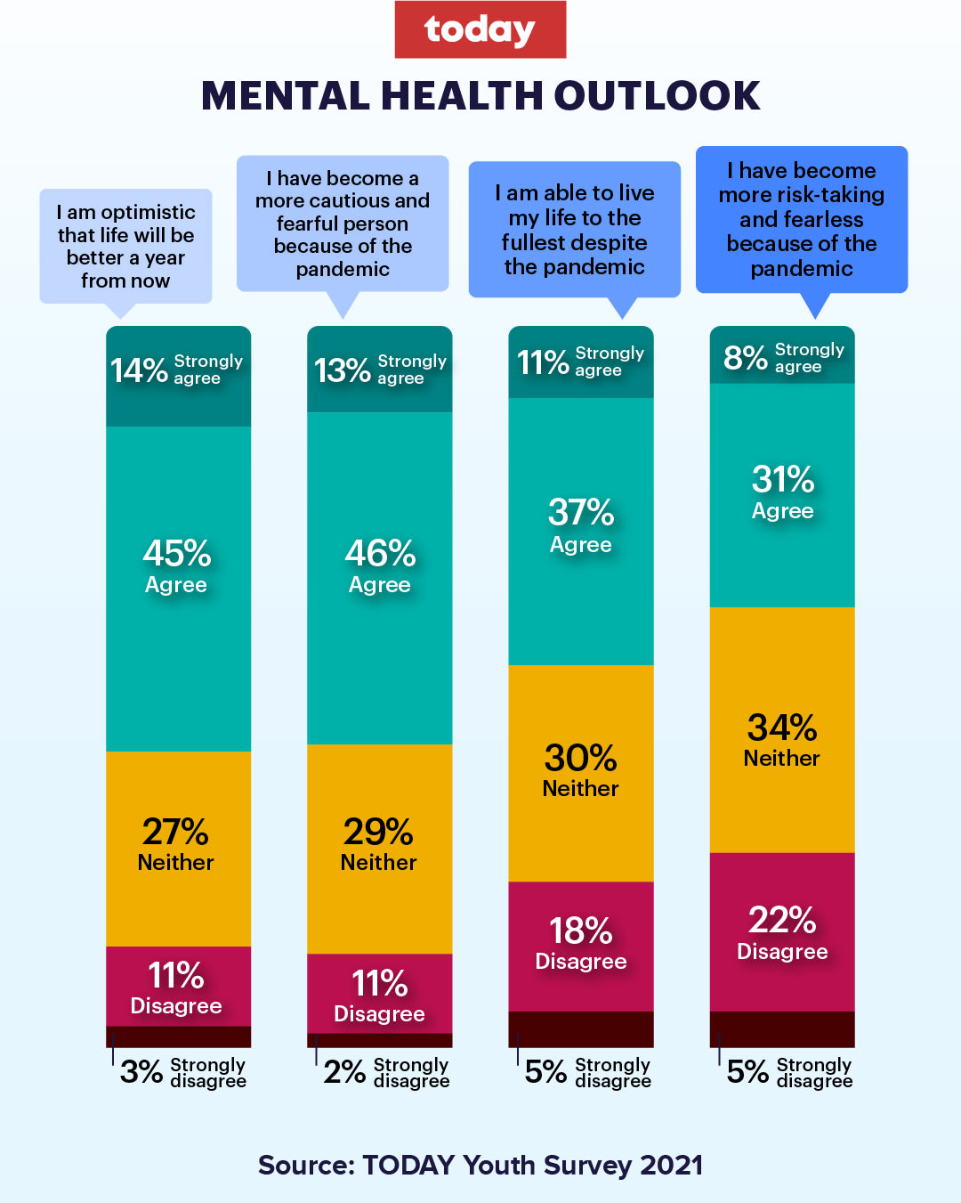 - A recent TODAY Youth Survey 2021 found a majority of those aged between 18 and 35 saying they have become less sociable, and more cautious and fearful