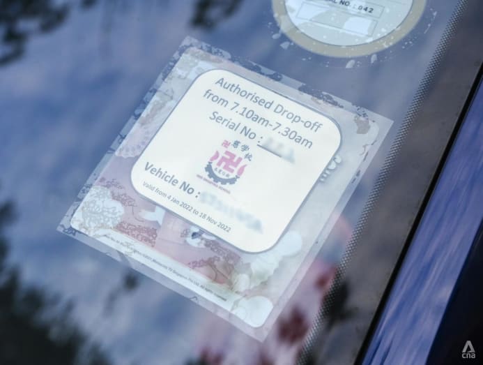 The parents of Primary 1 and 2 students at Red Swastika School have car labels indicating that they are allowed to enter the school to drop off their children, said Mr Aylwin Lam, whose two children attend the school.