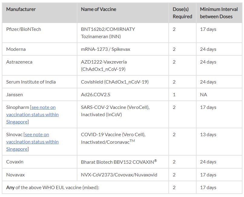 Q: What are the COVID-19 vaccinations and certificates accepted by Singapore?