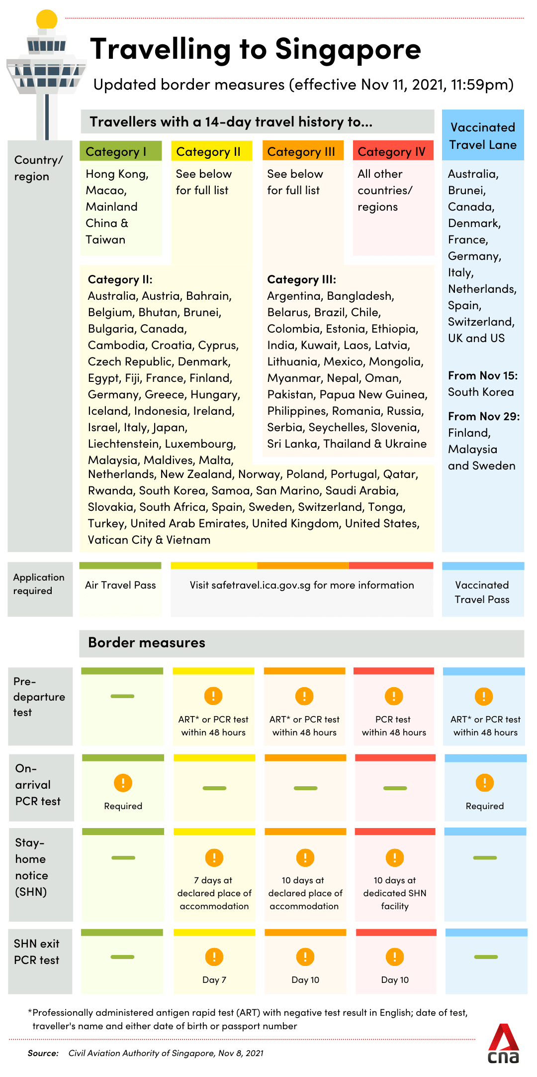 "From 11 November 2021, 2359 hours, we will also accept a negative, professionally administered ART (antigen rapid test) result taken within two days prior to departure as a valid PDT for travellers from these countries/ regions."