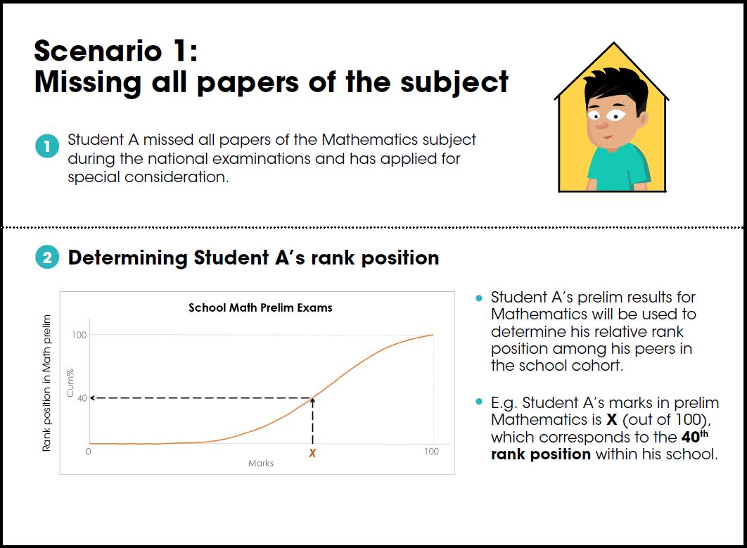 For candidates who miss all papers of a subject, their prelim results will be taken into consideration to determine their relative rank among their peers in the same school cohort.