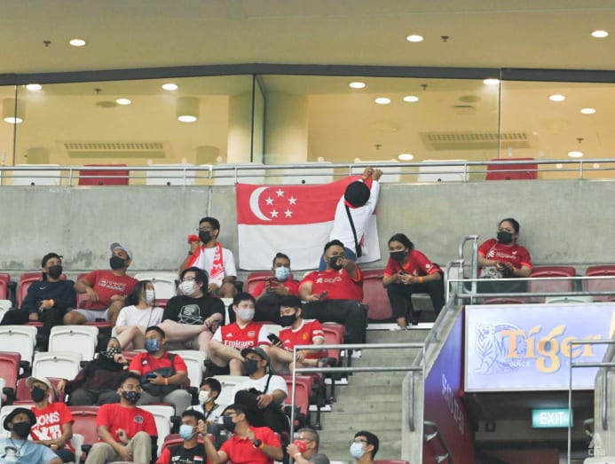 Despite having to keep their masks and be seated a metre apart, the energy of the crowd was not dampened: Fans could be seen excitedly cheering, waving banners and Singapore flags, and chanting enthusiastically to support the Lions.